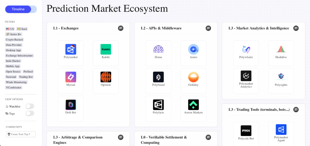- Data providers: API providers that help developers integrate prediction market data more easily into their products. Example: Dome.